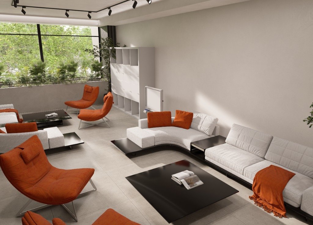 -Cowork en la planta alta del área comercial que incluye: recepción, 3 salas de juntas, área de café y descanso, baños de damas y caballeros.