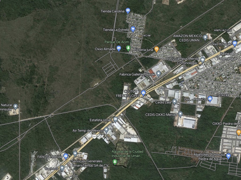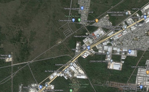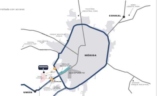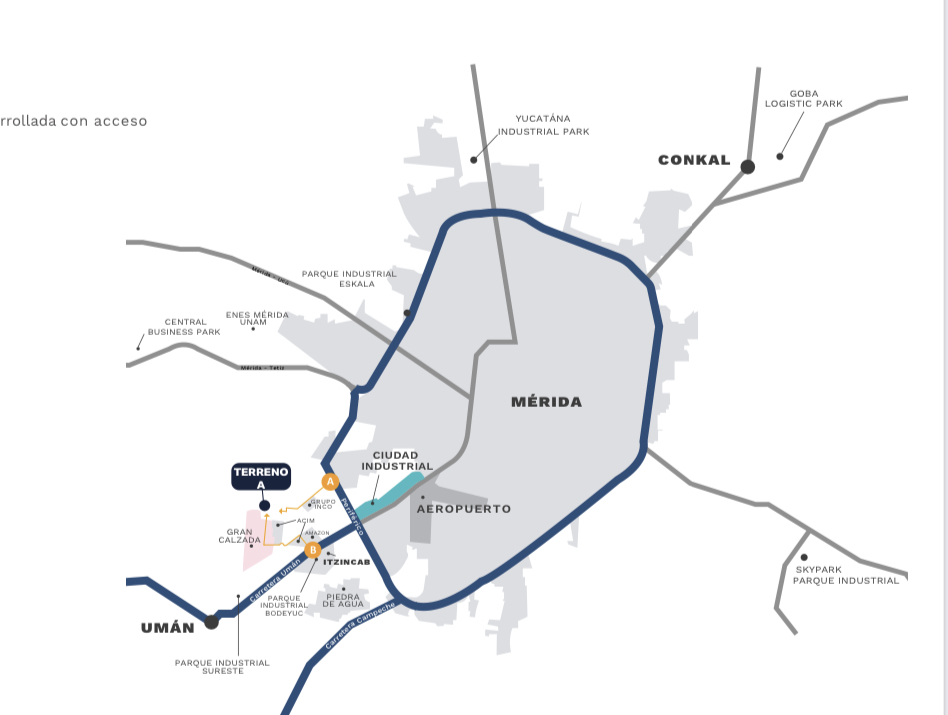A espaldas de la fábrica de la mueblería Marbol, la Planta de Producción de Tere Cazola, Bodegas de Yucatán, Fraccionamiento Gran Calzada, CEDIS de Amazon, entre otros.